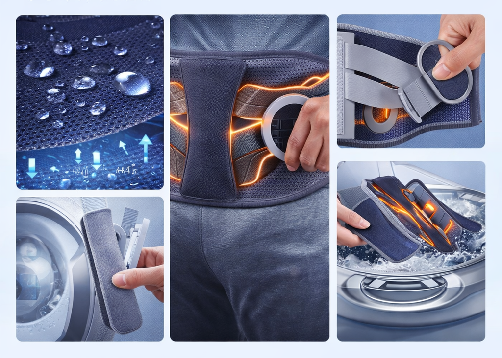 Facile manutenzione: le fasce di supporto e i cuscinetti termoterapici sono rimovibili; l'intero capo è lavabile in lavatrice.