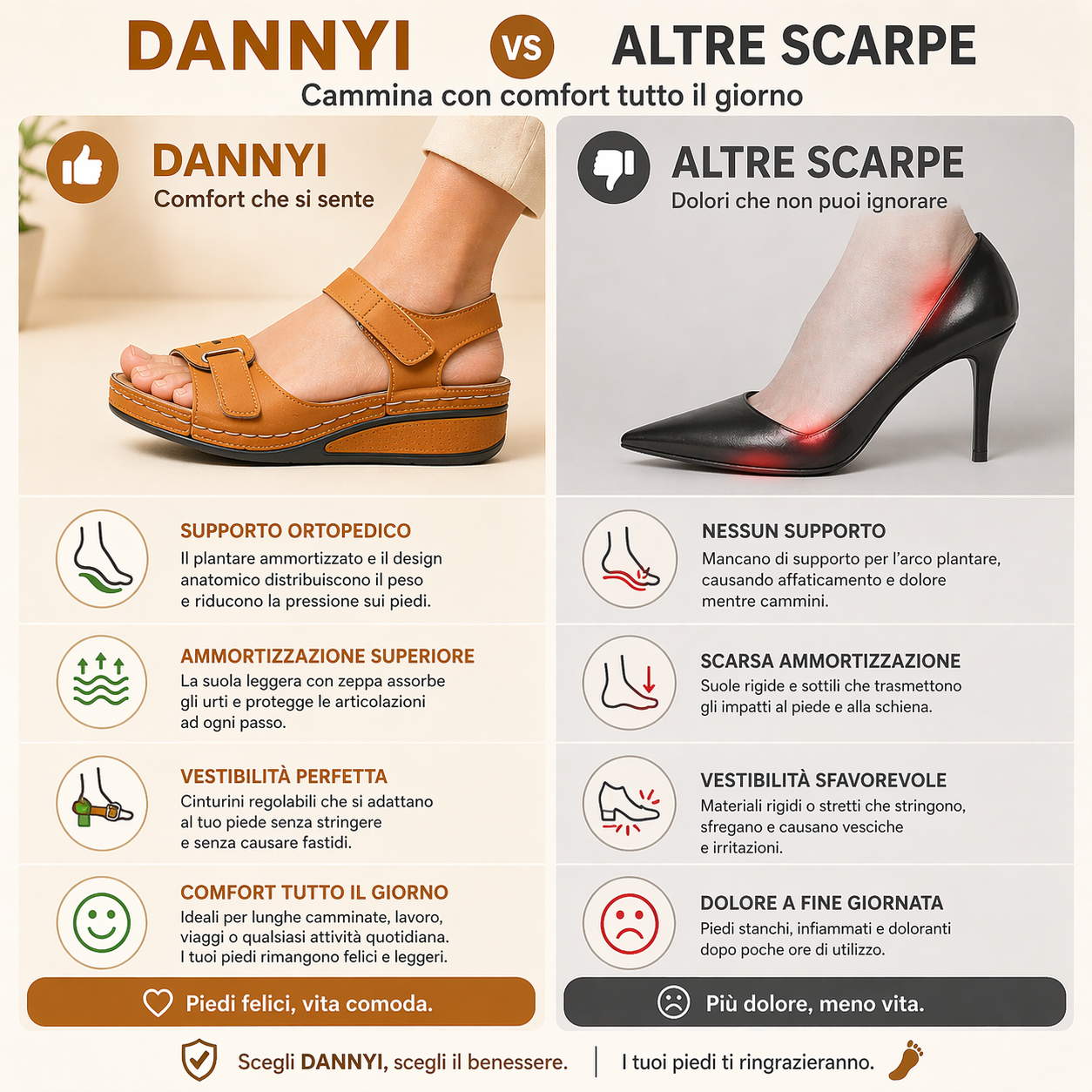 | Forma naturale del piede | ✔ | ✖ |