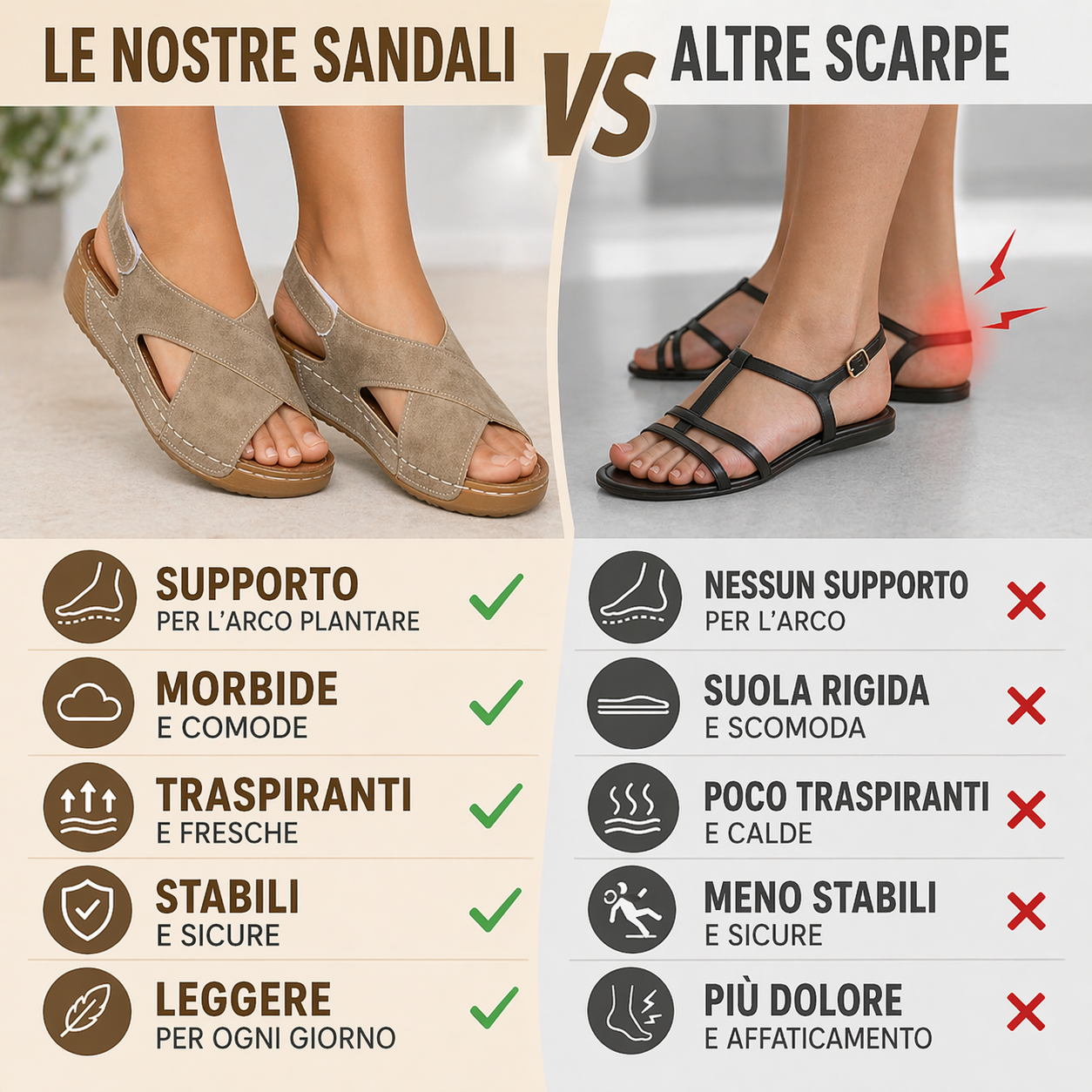 | Forma naturale del piede | ✔ | ✖ |