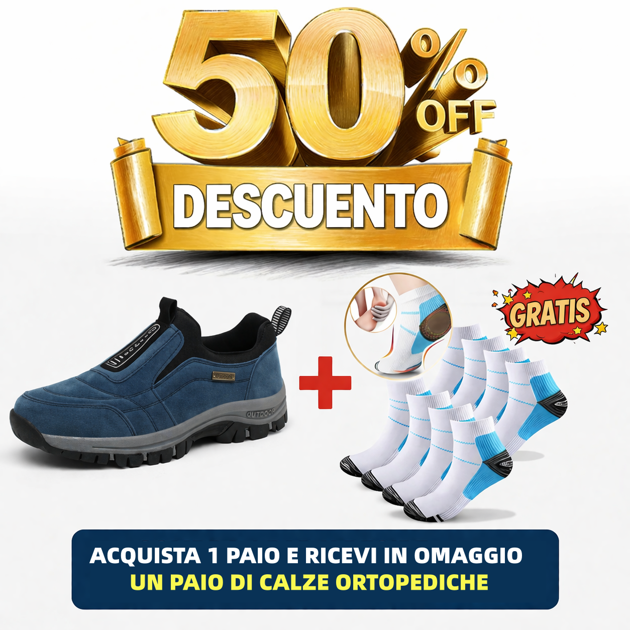 🎁 Gli ordini effettuati oggi riceveranno in omaggio un paio di calzini ortopedici premium (per alleviare il dolore ai piedi) del valore di 19 €.