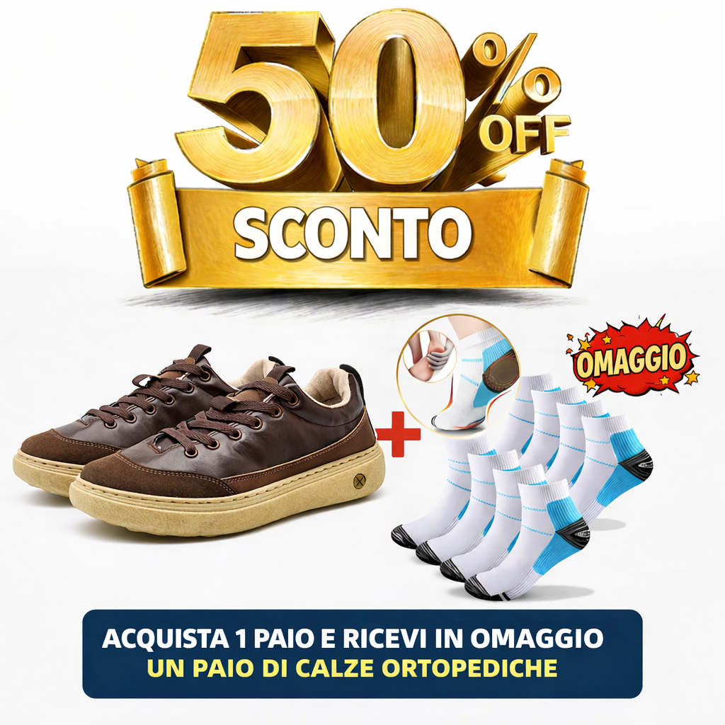 🎁 Gli ordini effettuati oggi riceveranno in omaggio un paio di calzini ortopedici premium (per alleviare il dolore ai piedi) del valore di 19 €.