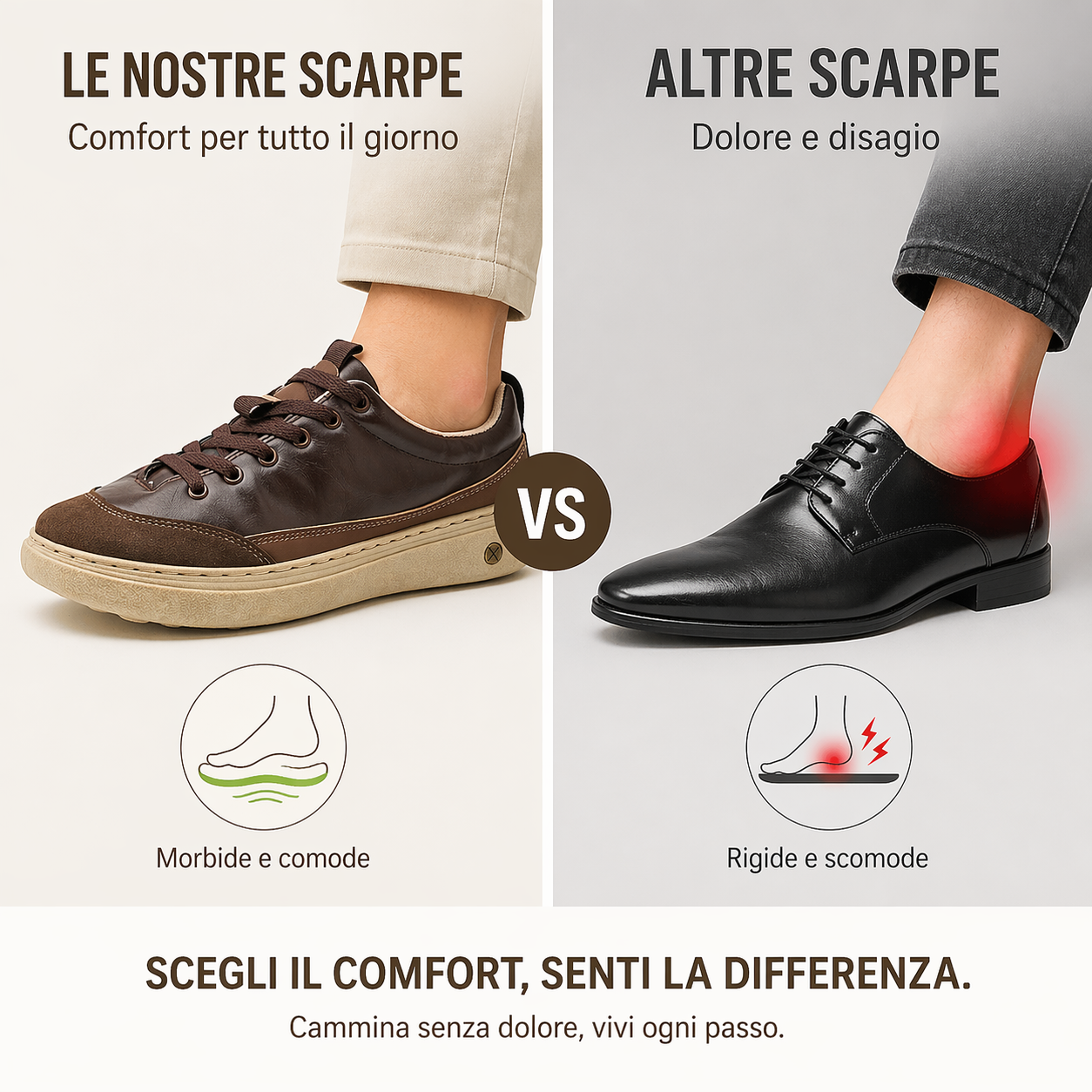 Le nostre scarpe soddisfano diverse esigenze, offrendo il massimo comfort. Sono particolarmente indicate per chi soffre di vari problemi ai piedi e alle articolazioni. Ecco alcuni sintomi comuni che le nostre scarpe possono alleviare: